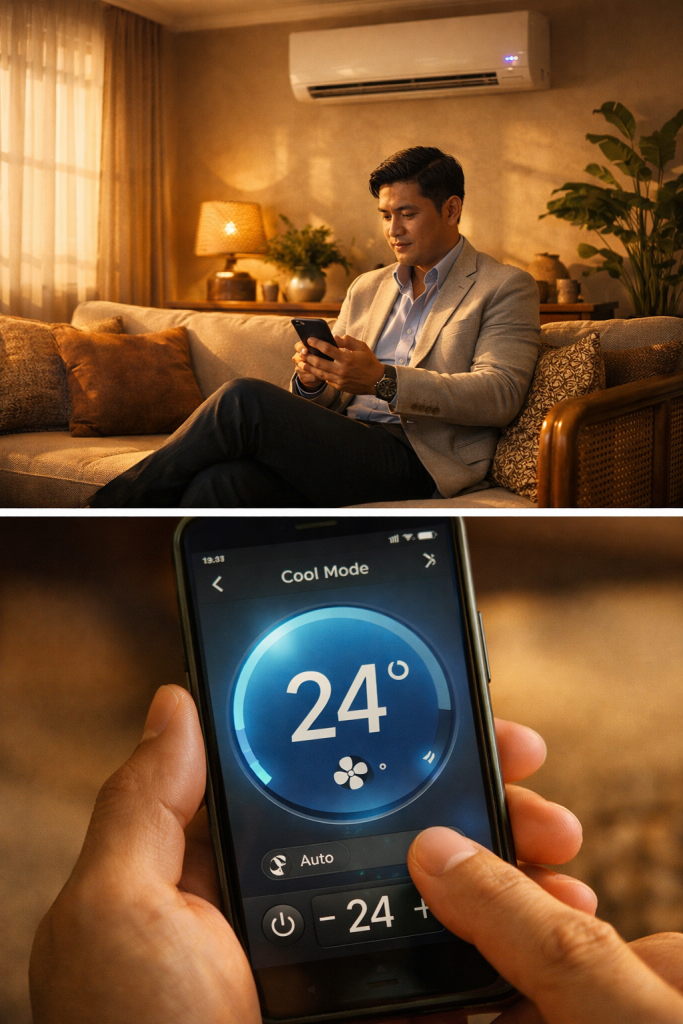 Imagine leaving the office at 5:30 PM on a 36°C Manila afternoon and tapping your phone to switch on your aircon — so by the time you unlock your front door, your bedroom is already cool. That’s not science fiction. That’s exactly what a smart WiFi aircon does for Filipino households in 2026.